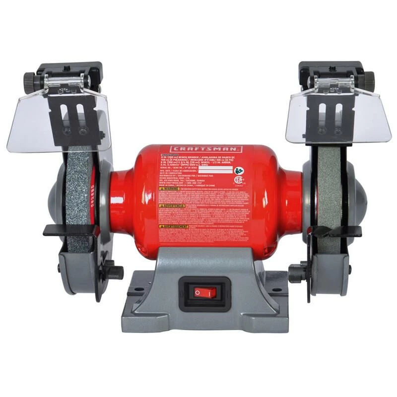 A must have for any home workshop. The Craftsman 6 in. bench grinder is designed for sharpening, shaping and grinding a wide variety of materials. Ideal for mower blades, garden tools and knives. The built-in LED lights over each wheel increase the illumination on the work surface.