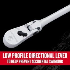 Get the high-end performance you need with this V-Seriesโข 1/4 in. Drive Comfort Grip Long Flex Head Ratchet. This ratchet delivers durability and dependability for demanding jobs with a precision-engineered gear for enhanced usability. Access hard-to-reach areas with a 4-1/2 arc swing and full grip strength with its 80-tooth design. The enclosed head keeps dirt out of the toolโs interior for long tool life.
