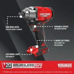 The V20 Brushless RP cordless 1/2 in. Impact wrench with hog ring anvil provides more runtime. Better performance. For your demanding jobs. This tool features two-speed settings and a variable speed trigger.