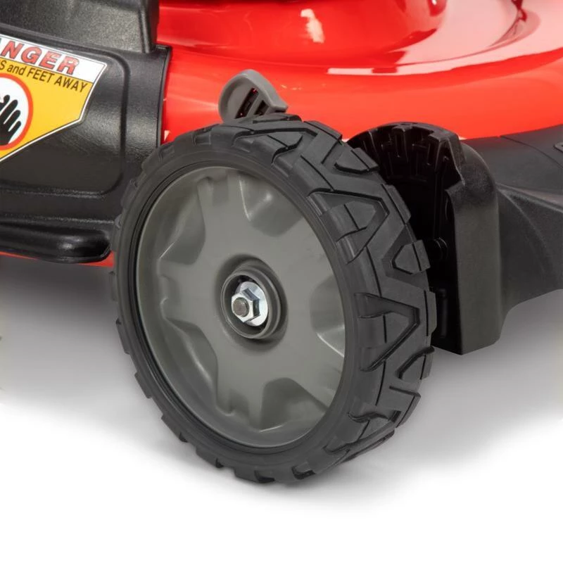 This 21-in. push Lawn Mower features a 150-cc Briggs & Strattonยฎ engine with one-step starting, so there is no priming needed. Its 3-in-1 convertible deck allows you to mulch, helping put nutrients back in the soil for a healthier lawn, discharge, or use the Dust Blocker bag. It reduces in-air and dust debris, and offers a 1.9-bushel bag capacity for easy clean up or composting. The 11 in. rear wheels provide improved maneuverability on any terrain.