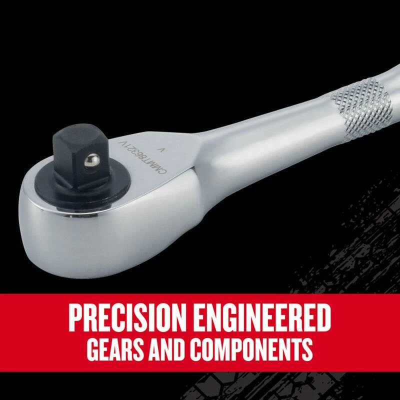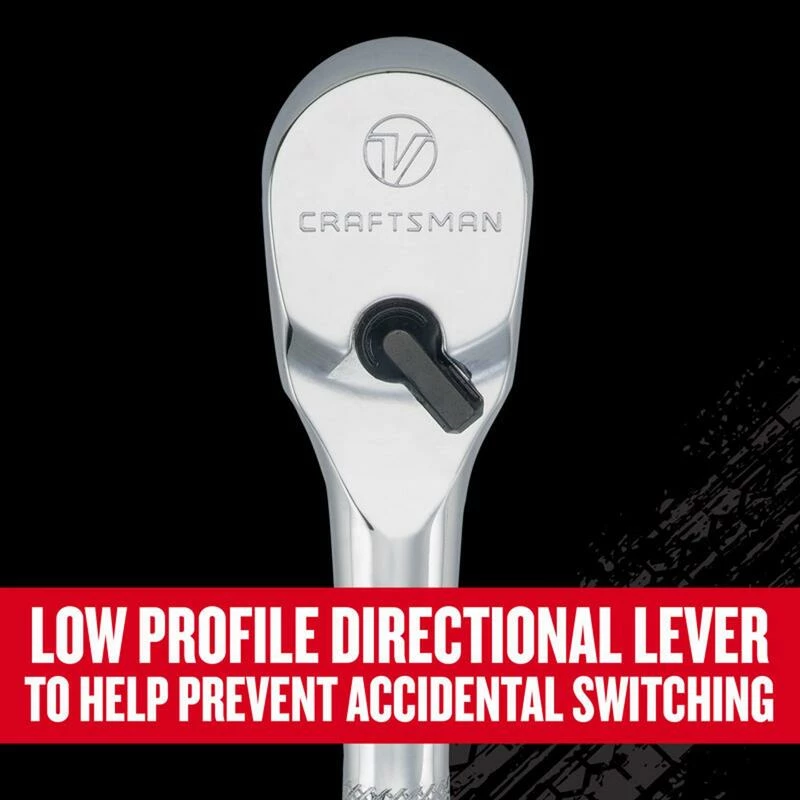 Tackle demanding projects with this V-Seriesโข 3/8 in. Drive Ratchet. This ratchet blends pro-grade performance and expert-tested endurance with a precision-engineered gear for optimized usability. Access confined work areas without losing grip strength with the 96-tooth design along with its short 3-3/4 arc swing. This tool was designed to minimize accidental switching for enhanced productivity with its low-profile directional lever.