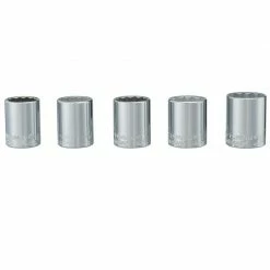The 5 piece large Size Metric Socket Set has high-visibility, high-contrast Easy-To-Read sockets with easy-to-see size markings. This set resists fading, chipping and corroding and it consists of 1/2 inch drive 12 point sockets.