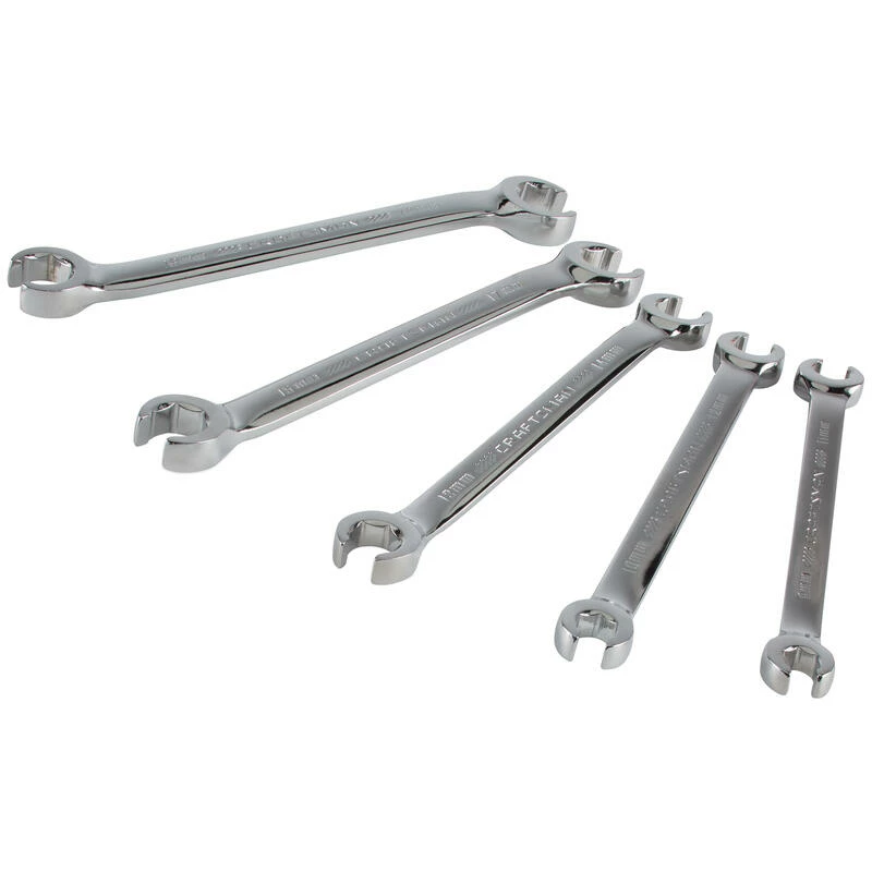 Built for working on cars, appliances and around the house, this Craftsman 5 piece flare nut wrench set metric is indispensable. Built for working on brake, steering and refrigeration lines, it also comes in handy for mountain bike suspensions and other bicycle repairs. Headlock box ends spread turning force throughout the entire fastener head for a solid hold, while the over-sized wrenching surface grips multiple sides of soft metal fittings to avoid stripping them. The 5 piece flare nut wrench set metric works on a variety of hexagonal fittings, from aluminum and copper to brass. It also features a traditional wide profile for greater leverage. These alloy steel wrenches come in a handy storage case.