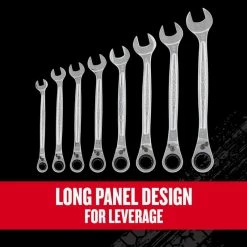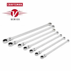 High-grade performance is at your fingertips with the V-Series XXL SAE Ratcheting Single Flex Head Double Box End Wrench Set. Engineered for professionals, a 72-tooth design on one box end provides users with a quick and durable ratcheting solution. The other end has a 6-point extended box end design, which helps increase access and engagement of fasteners in recessed positions. The extra-long handle features a lightweight I-beam design that adds control while maintaining premium strength. Designed to fit in most metal storage drawers, the vertical wrench rack provides users with an organized method to store wrenches.