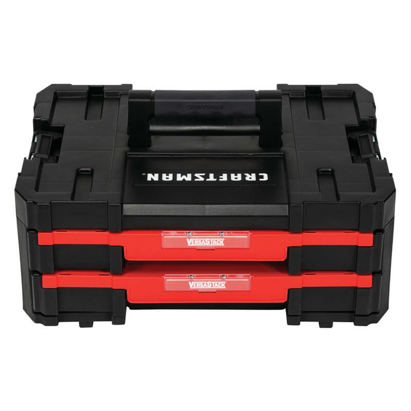The Craftsman Versastack system is a flexible platform that allows for many different combinations based on the user needs. This unit features two drawers and can be stacked on or under other Versastack components.