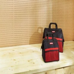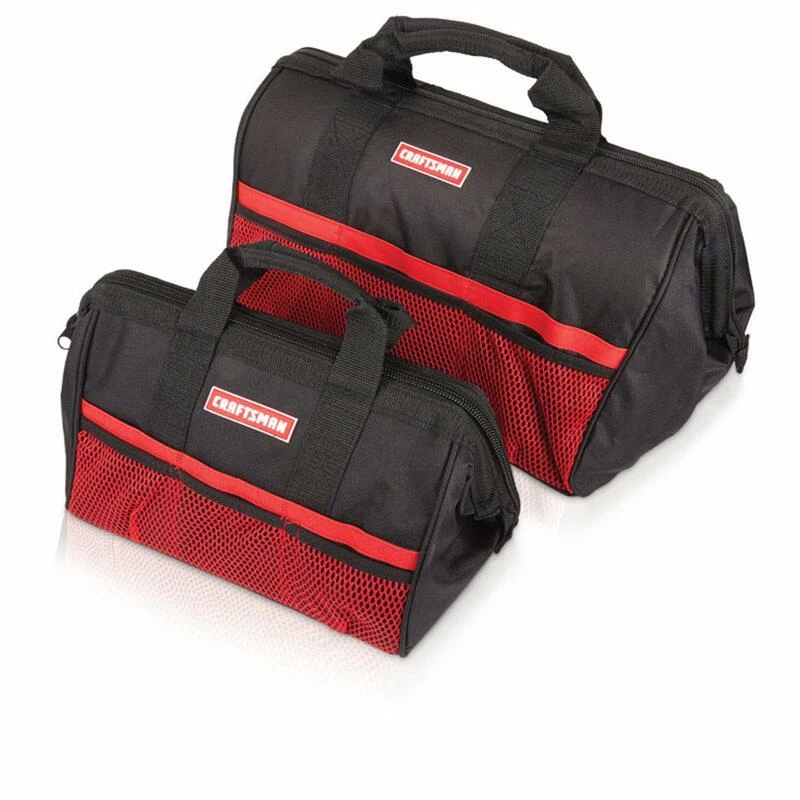 This CRAFTSMANยฎ 2-in-1 Combo set of Tool bags includes an 18-in bag for long tools and a 13-in zippered tool bag with pockets. Both bags are made of 600D Denier material, resisting moisture and wear and tear, and feature handles for easy carrying. The open-mouth structure on each bag enables quick and easy access to tools.