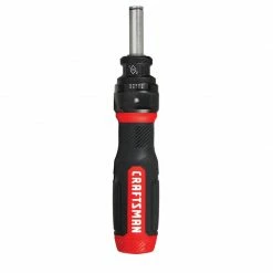 This 15-Piece Ratcheting Screwdriver Set delivers 2 times the speed of a standard ratcheting screwdriver with its patented SpeedDrive technology. SpeedDrive’s fluid ratcheting action continuously drives or loosens fasteners with each left and right turn of the handle. The ergonomic bi-material handle is designed to optimize speed, torque, and precision with in-handle storage for quick and convenient access to bits.