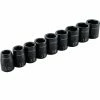 9 pc. 3/8-in. SAE Impact Socket Set is engineered and constructed to endure high torque application with impact wrenches. These impact socket are specially designed to engage with the flats of fasteners to prevent rounding so itโs time to turn up the torque and turn tough jobs into easy ones.
