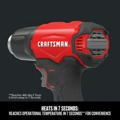 V20 Cordless Heat Gun delivers a high temperature of 950 degrees for a variety of applications. It reaches operational temperature in 7 seconds for increased productivity. This heat gun includes a deflector nozzle as well as a spreader nozzle. The curved deflector nozzle directs hot air around surfaces for even heating in applications such as shrink tubing while the spreader nozzle spreads heat evenly over a wider area for applications like drying, shaping and stripping paint. A compact design allows for use in tight spaces for a variety of applications.