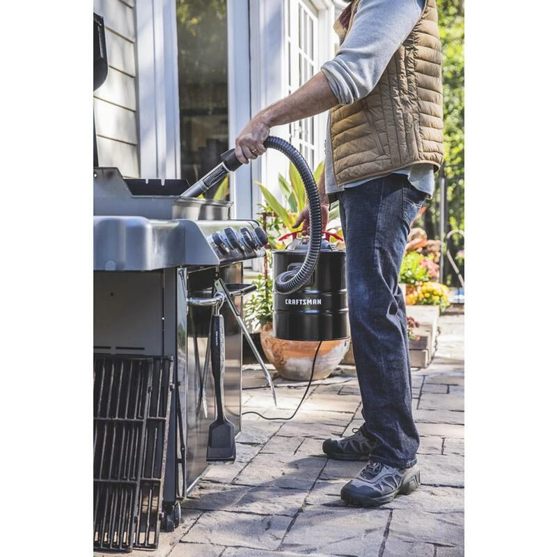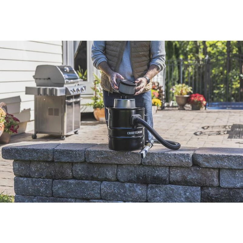 The CRAFTSMAN 5 Gallon Ash Vac helps you quickly remove cold ashes and eliminate dusty messes safely. Its heavy duty aluminum build guarantees safe removal of items like cool ash from your fireplace, pellet stove, wood stove, grill or fire pit. The 3-foot locking hose is metal-lined and features an LED light for visibility in dark areas. It also includes a non-stick coated HEPA media filter for fine particle capture. This shop vacuum is made for dry applications only.