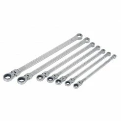 High-grade performance is at your fingertips with the V-Series XXL Metric Ratcheting Single Flex Head Double Box End Wrench. The 72-tooth design on one box end provides a quick and durable ratcheting solution for professionals on the job. The other end features a 6-point extended box end, which provides better access to and engagement of fasteners in recessed positions. The extra-long handleโs lightweight, I-beam design adds control while maintaining strength. The vertical wrench rack is designed to fit into most metal storage drawers, providing users with an organized place to store their wrenches.