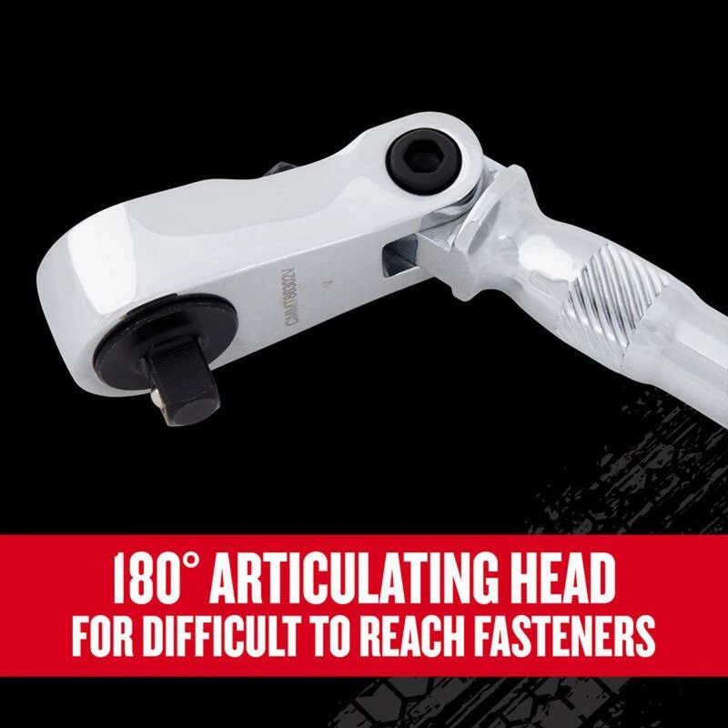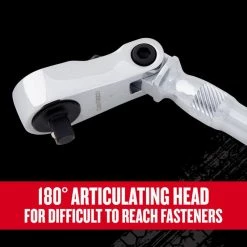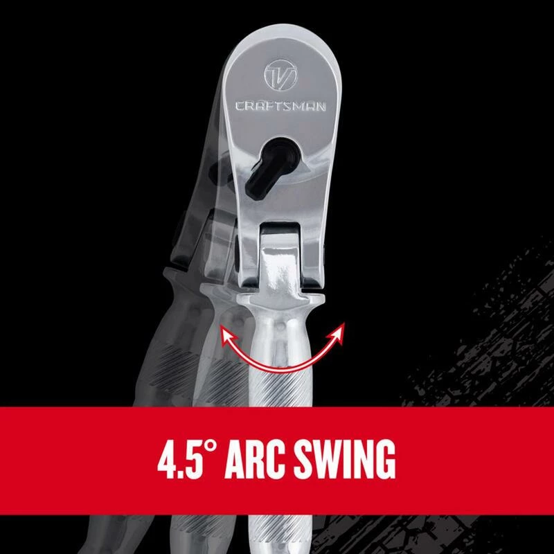 Designed for professionals, this durable V-Series™ 1/4 in. Drive Flex Head Ratchet is constructed with a precision-engineered gear that provides users with improved tool life. Reach hard-to-access spots while maintaining grip strength with its 80-tooth design and short 4.5 arc swing. Maximize this ratchet’s longevity of use with an enclosed head design that blocks dirt from damaging the tool’s interior.