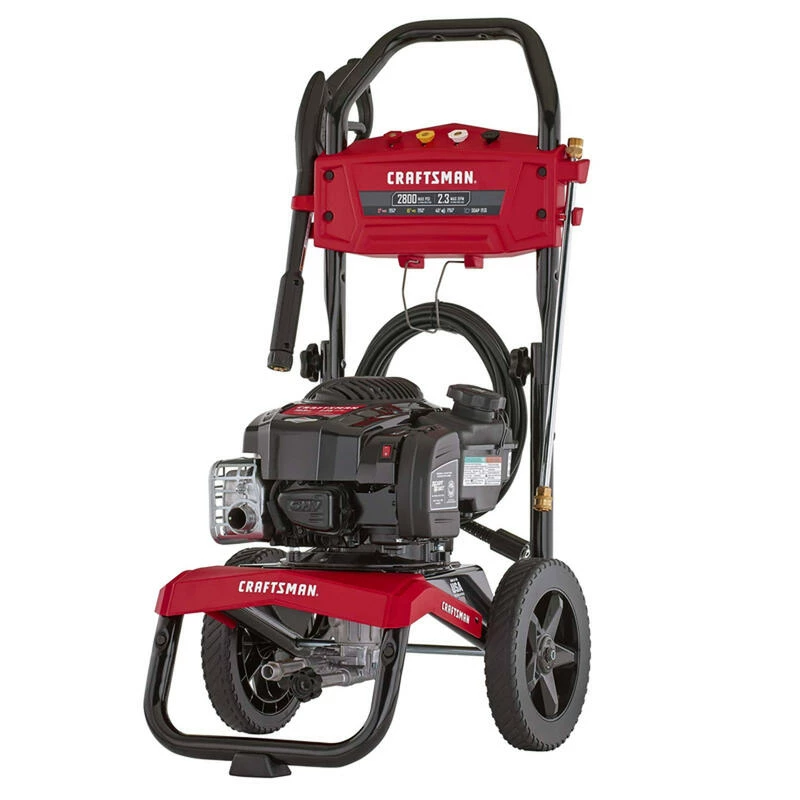 Gas pressure washer powered by a reliable Briggs & Stratton engine provides all the power you need to tackle your everyday residential cleaning tasks. Featuring the ReadyStart engine starting system, the unit will start within two pulls. Four quick-connect spray tips allow you to quickly adjust the spray pattern to best fit the task at hand and you can quickly maximize your cleaning potential by using the direct from concentrate soap system or siphon hose.