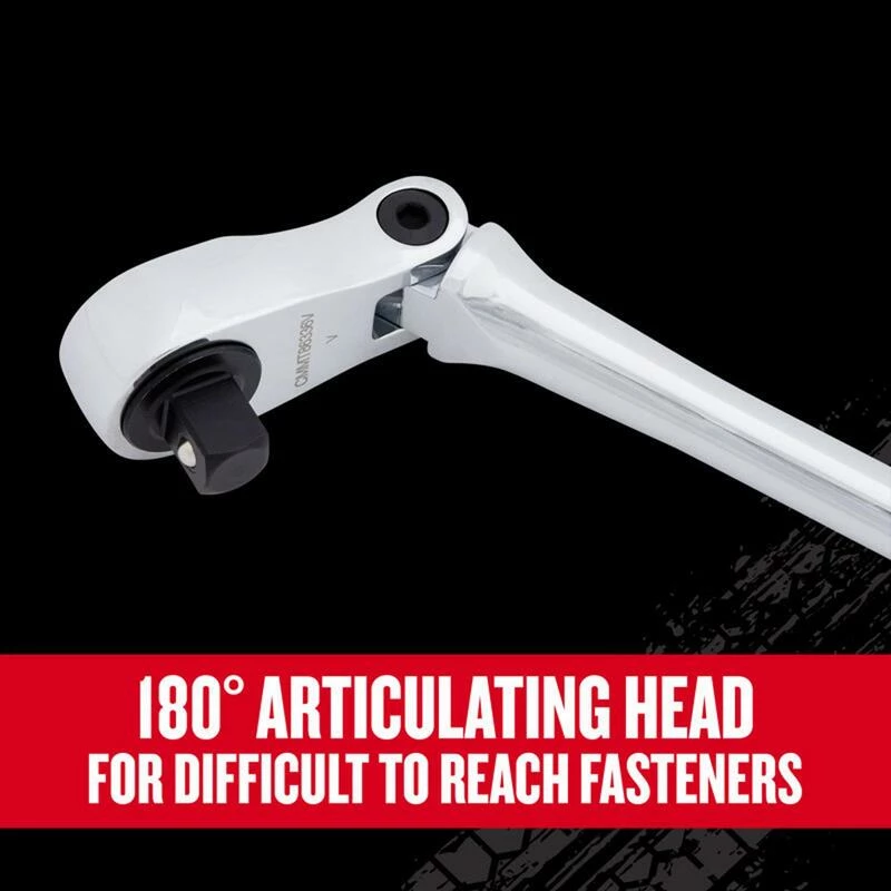Get the reliability you need with this V-Series™ 1/2 in. Drive Comfort Grip Long Flex Head Ratchet. The ratchet offers high-end performance and endurance for challenging projects with a precision-engineered gear for optimized usability. Reach difficult-to-access areas with a 3-3/4 degree arc swing without sacrificing grip strength with its 96-tooth design and lessen hand strain when working long hours with this tool’s comfortable grip.