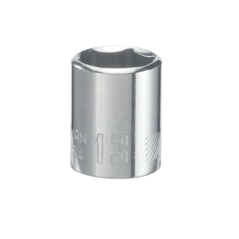 Your toolbox isn’t complete without the 1/4-in. Drive 13mm 6 Point shallow Socket. This socket comes with large size markings and a rust resistant coating.