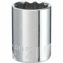 Your toolbox isn’t complete without the 1/2-in. Drive 21mm 12 Point shallow Socket. This Socket comes with large size markings and a rust resistant coating.