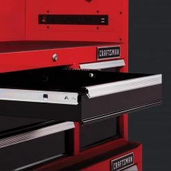 - Gas struts support the tool chest lid and provide access to the charging area