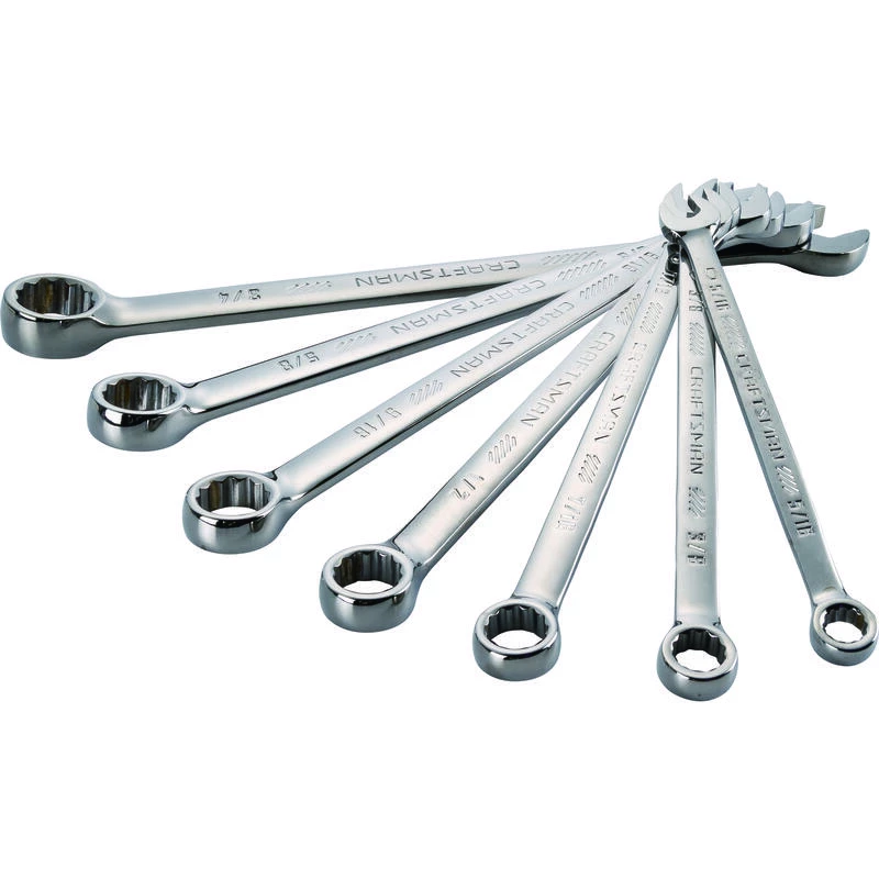 The Craftsman 7 pc. SAE Long Panel Gunmetal Chrome Combination Wrench Set offers a number of applications from standard bolt turning to specific automotive repairs.