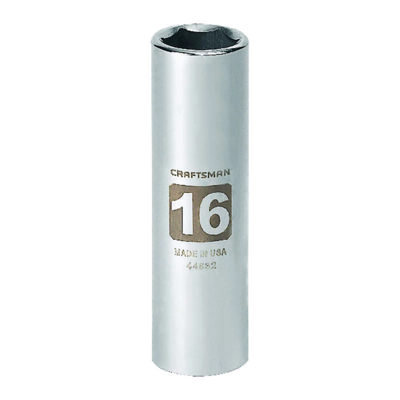 1/2-in. Drive 16mm 6 Point Deep Socket features a deep well construction and internal construction designed to engage with the flats of fasteners. This allows for the user to reach those hard to reach fasteners and torque without the fear of stripping a bolt.