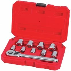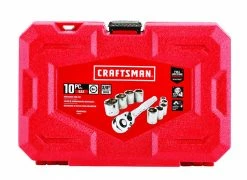 Craftsman 3/8 inch standard socket wrench set provides a wide assortment of sockets sized to handle a wide range of nuts and bolts. The six point sockets offer good side wall contact. The set comes with a tray to organize the pieces and make this set very portable.