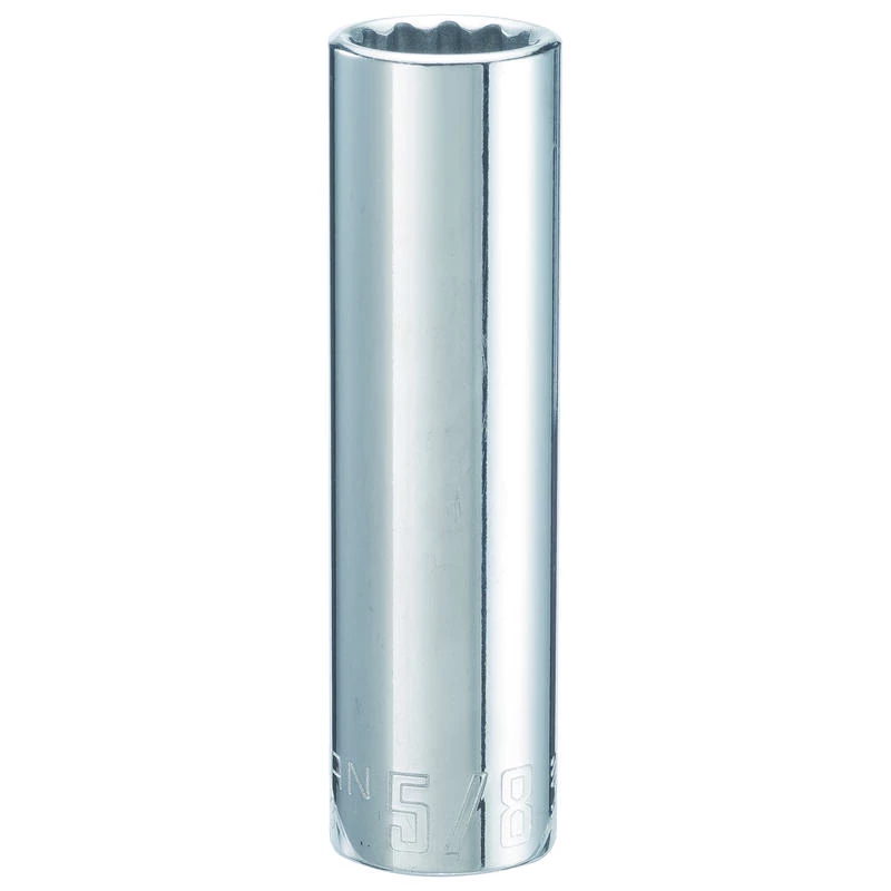 1/2-in. Drive 5/8-in. 12 Point SAE Deep Socket features a deep well construction and internal construction designed to engage with the flats of fasteners. This allows for the user to reach those hard to reach fasteners and torque without the fear of stripping a bolt.