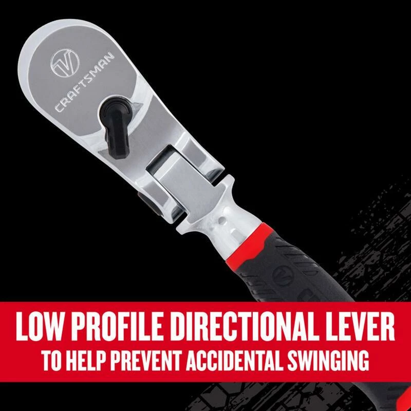 Built for professionals, this V-Seriesโข 1/4 in. Drive Comfort Grip Flex Head Ratchet delivers high-end performance with a precision-engineered gear for optimized utility. Maintain grip strength while accessing confined spaces with its 80-tooth design and 4-1/2″ arc swing. Keep dirt out of the ratchetโs interior with the enclosed head and enhance the toolโs longevity of use.