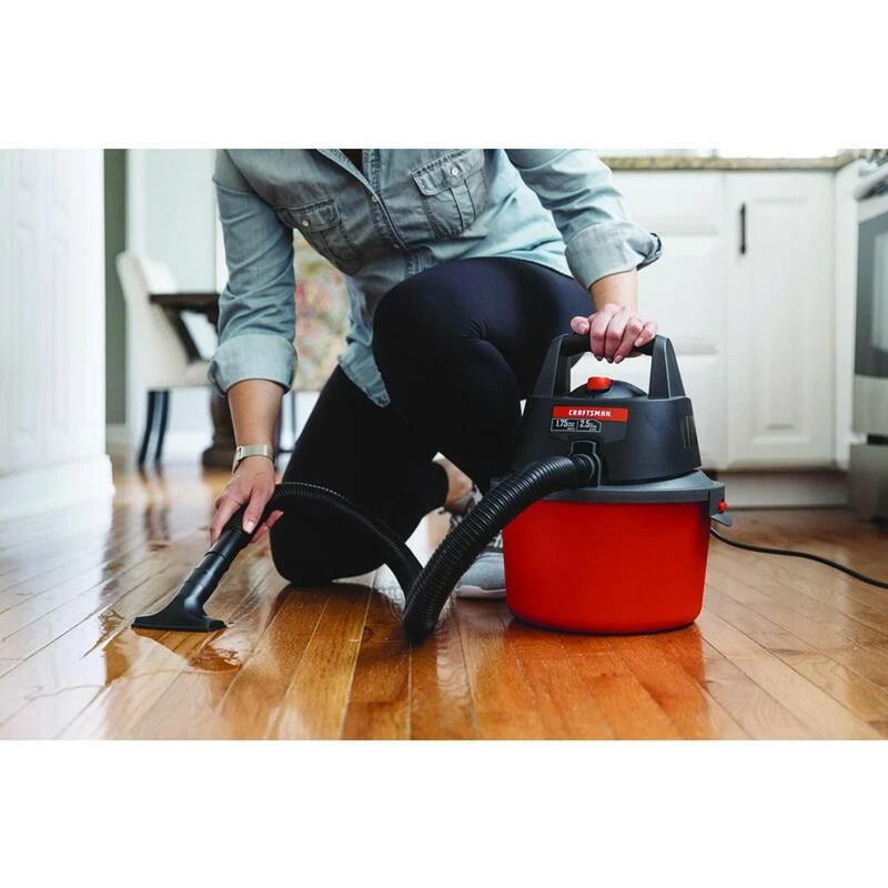 The CRAFTSMAN 2.5 Gallon Wet/Dry Vac, with a 1.75 peak HP motor, is great at home, in the garage, or jobsite detail cleaning. With its small size and carrying handle, this shop vacuum goes wherever you need to clean. It’s equipped with the crevice tool to clean hard-to-reach places and the utility nozzle good for a quick garage cleanup. This 2.5-gallon wet dry vac can also be used as a blower, making it a great two-in-one tool. If you’re looking for a portable solution for small messes, requiring little storage space, this vacuum is the answer.