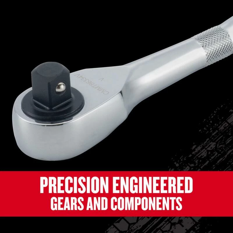 Tackle demanding fastening projects and finish with pride with the V-Series™ 1/2 in. Drive Comfort Grip Ratchet. Manufactured specifically for professionals, this ratchet delivers consistent high performance with a precision-engineered gear for enhanced tool longevity and endurance. Without sacrificing strength, easily access confined spaces with its 96-tooth design and 3-3/4 arc swing that optimizes usability.