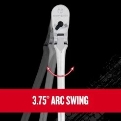 Complete every fastening project with pride as the V-Seriesโข 1/2 in. Drive Long Flex Head Ratchet provides the durability and dependability you need for daily work. Long-lasting performance and pro-grade usability are delivered by a precision-engineered gear for expert results each time. Reach fasteners that are difficult to access without losing grip strength with this ratchetโs 96-tooth construction and 3-3/4 arc swing. Productivity is easily maintainable with the help of the 180ยฐ articulating head that adjusts for enhanced reach.