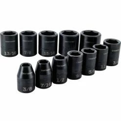 12 pc. 1/2-in. SAE Impact Socket Set is engineered and constructed to endure high torque application with impact wrenches. These impact socket are specially designed to engage with the flats of fasteners to prevent rounding so itโs time to turn up the torque and turn tough jobs into easy ones.