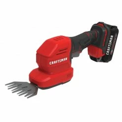 V20 cordless shear shrubber features interchangeable hedge and shear blades and is equipped with a 1.5 Ah battery allowing you to take on the tasks at hand. The V20 battery platform is compatible with Craftsman V20 Outdoor Equipment and power tools.