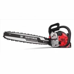 The Craftsman S205 gas powered chainsaw features a 46cc full-crank high output 2-cycle engine to deliver maximum power. The 20-in low-kickback bar and chain goes through even the toughest wood quickly and easily. It is equipped with Easy Pull Start technology for simpler pull starts to get the job done fast. The durable pro-grade chassis is engineered to withstand the most brutal and prolonged cutting tasks. The cushioned full wrap aluminum handle and 5-point anti-vibration system makes this chainsaw balanced, maneuverable and comfortable to operate. Features such as the adjustable automatic oiler, inertia-activated chain brake and tool-free access to filter and spark plug enhance the design of the chainsaw to make cutting a breeze. 2-cyle engine oil included.