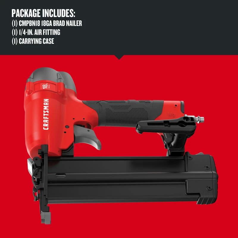 The Craftsman 18 Ga. Brad Nailer drives 18GA nails from 5/8-in. to 2-in. Length is perfect for small trim, shoe molding and baseboards.