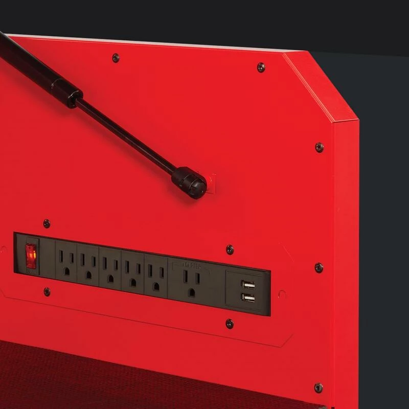- Easy-access charging station inside lid includes a surge protector with 6 power outlets and 2 USB outlets