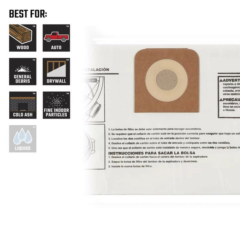 - COLLECTS FINE DUST: Dust bag designed for capturing fine debris such as drywall dust, cold ashes and ultra-fine particles