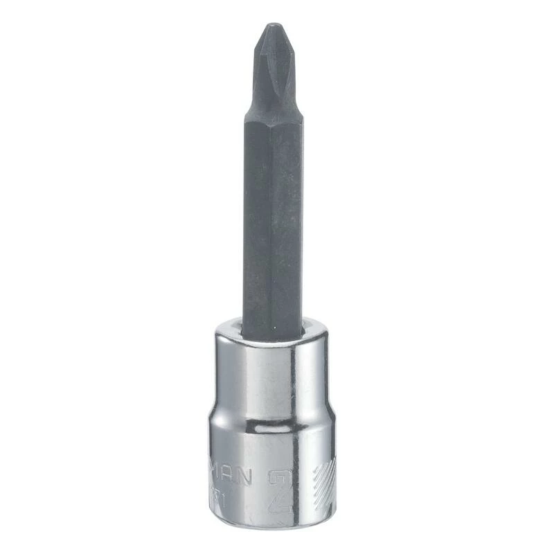 3/8-in. Drive Philips #2 Screwdriver Bit Sockets are intended for hand-operated handles and ratchets only. It features large markings for quick identification and corrosion resistant, high-polish chrome finish.