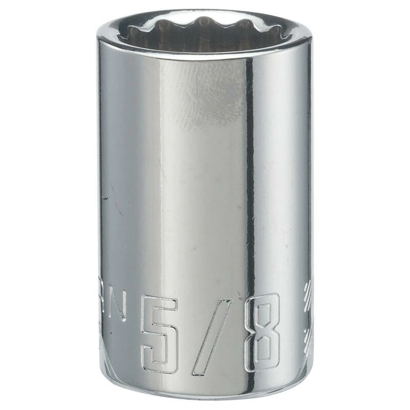 Your toolbox isn’t complete without the 1/2-in. Drive 5/8-in. 12 Point SAE shallow Socket. This Socket comes with large size markings and a rust resistant coating.
