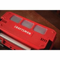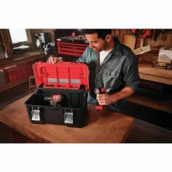 This 20-in. Tool Box has a cantilever sliding tray which provides optimal accessibility to tools. It features unique lid design with windows, enabling visibility of cup content without opening the tool box, removable cups and an integrated seal to protect your tools from weather conditions.